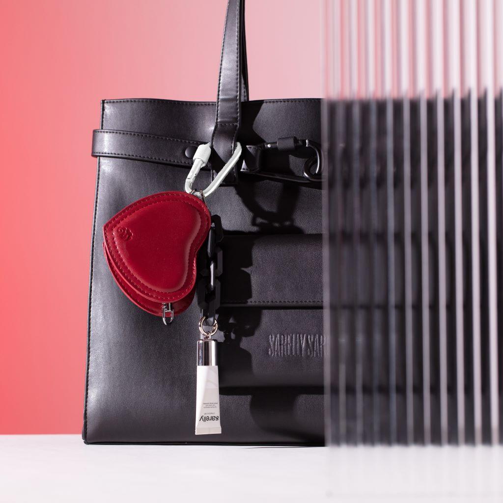 Mini bolsa/charm con cadena y mosquetón & Duo Labial Matte Rojo