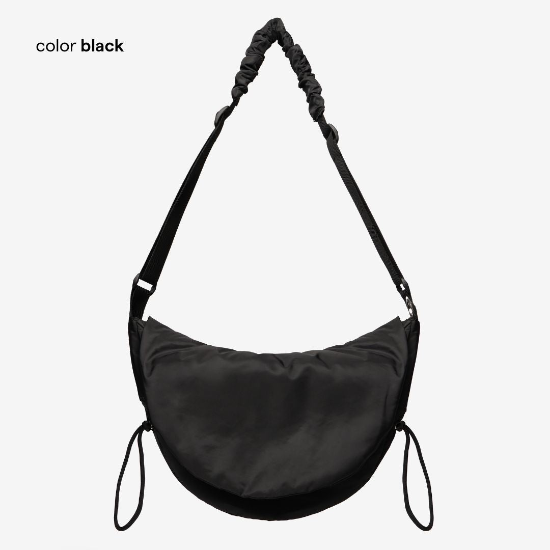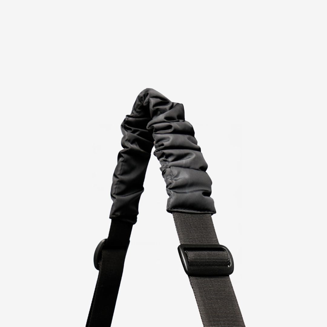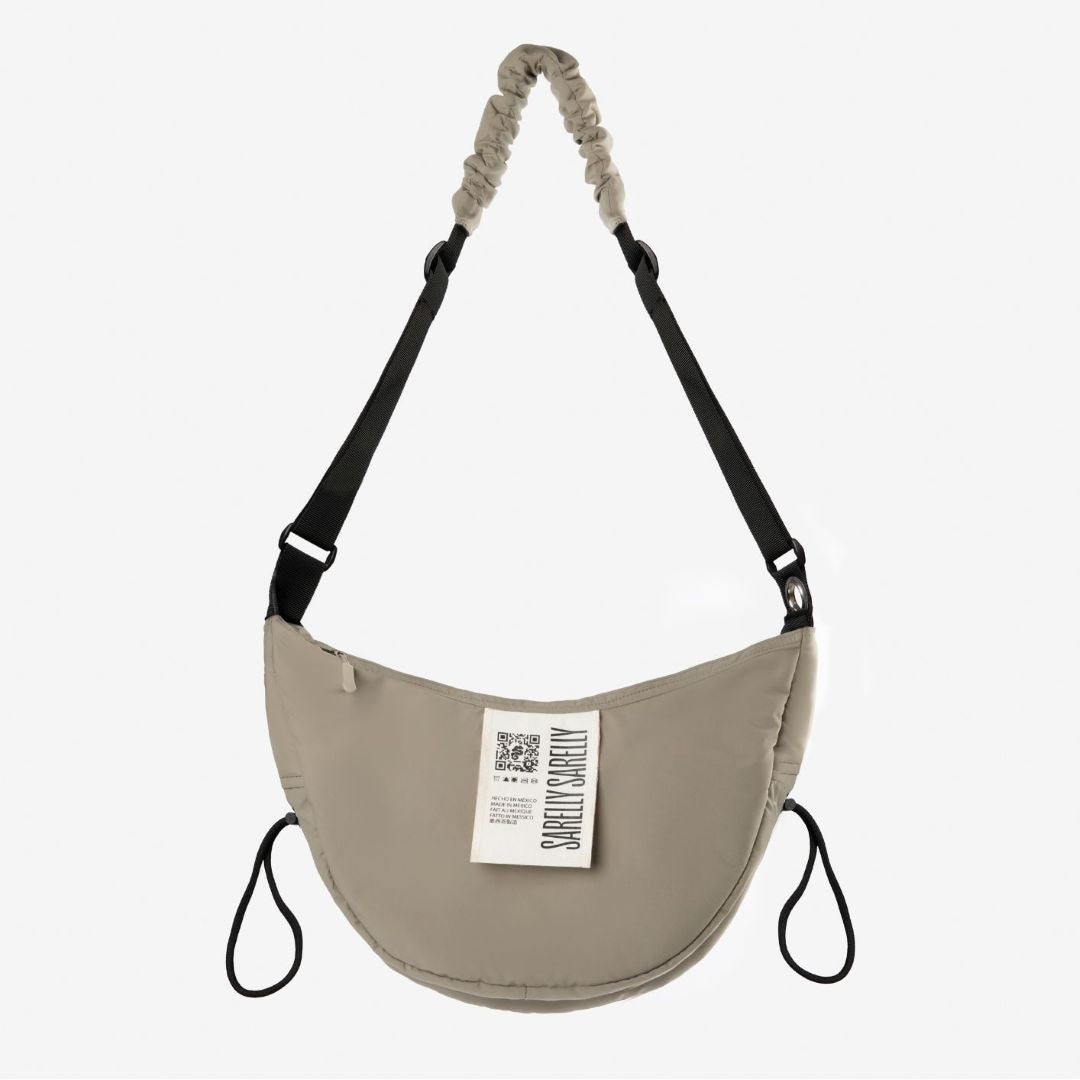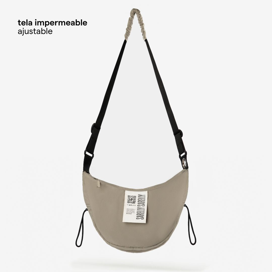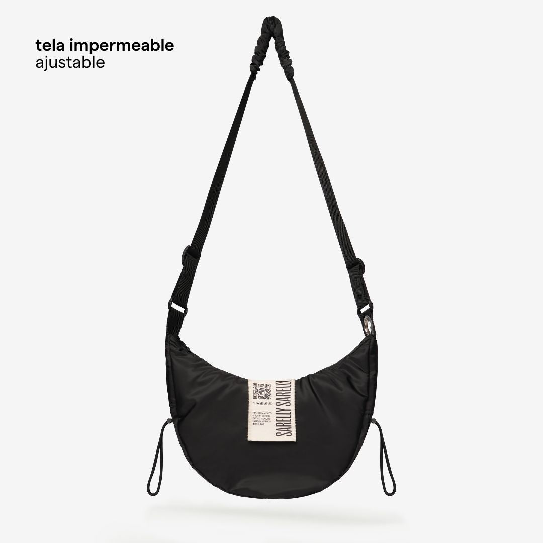 • Correa de tela ajustable, con inserto de tela fruncida para mayor comodidad en el hombro
