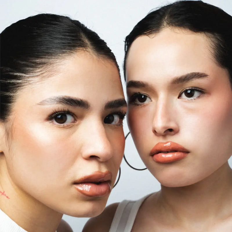 De un lado Gloss hidratante, nada sticky, no se chorrea y see through que realza el color natural de tus labios con un toque de color. Del otro lado Shimmer para que juegues a trancisionar tu maquillaje. Shimmer iridiscente hecho a base de perlas, no microplásticos, que lo hacen un producto cómodo y seguro.