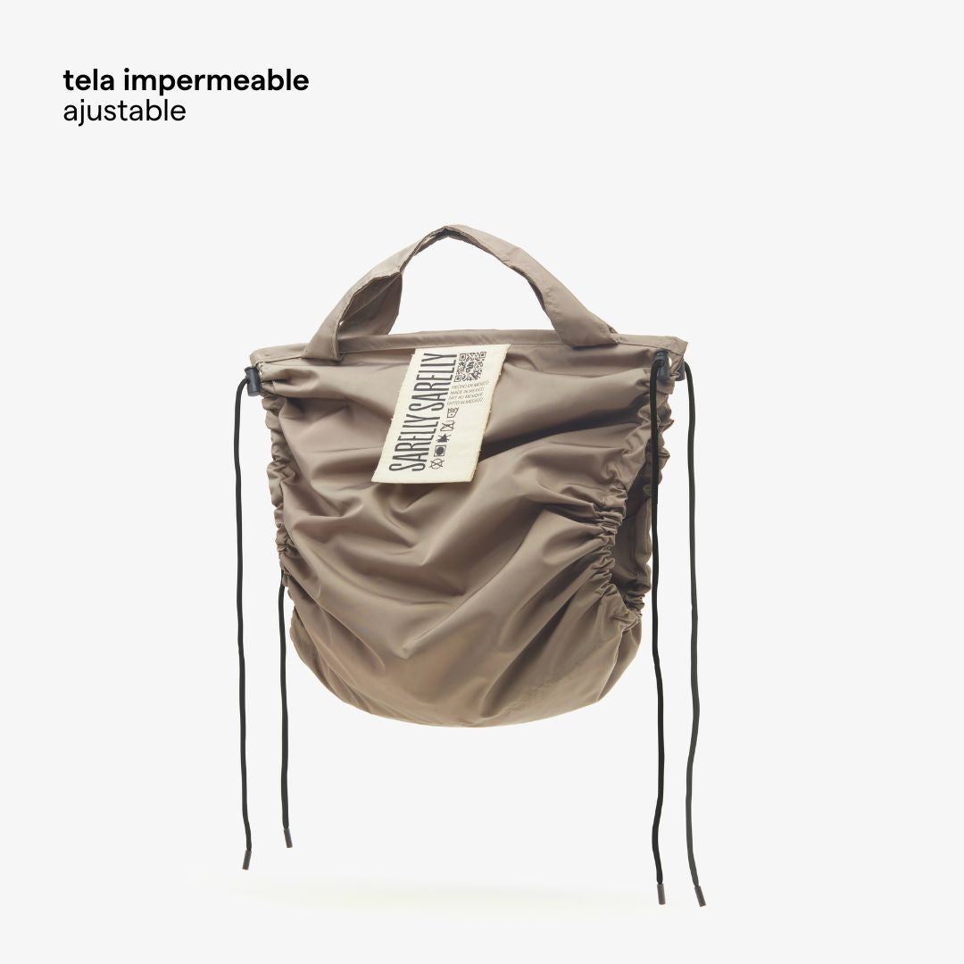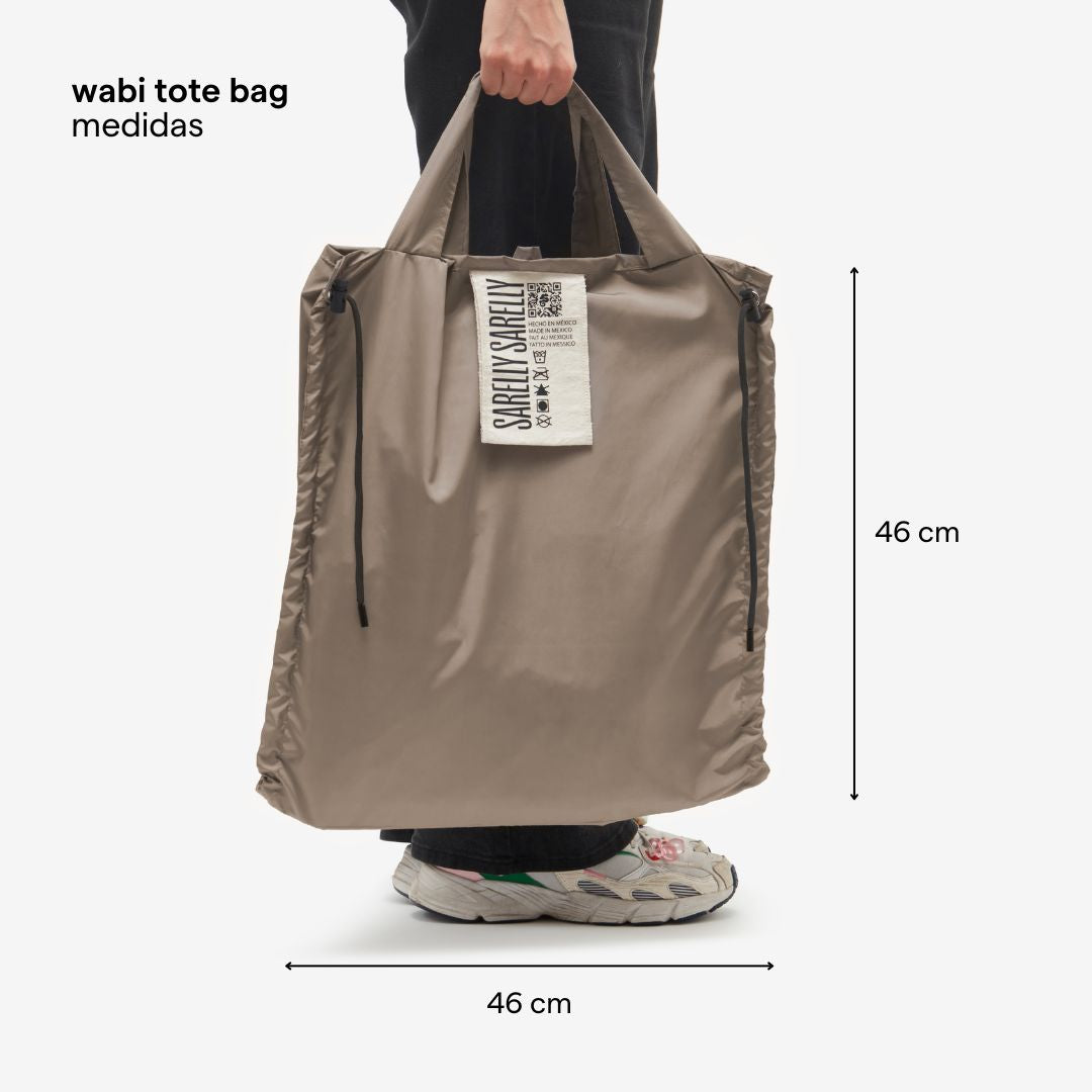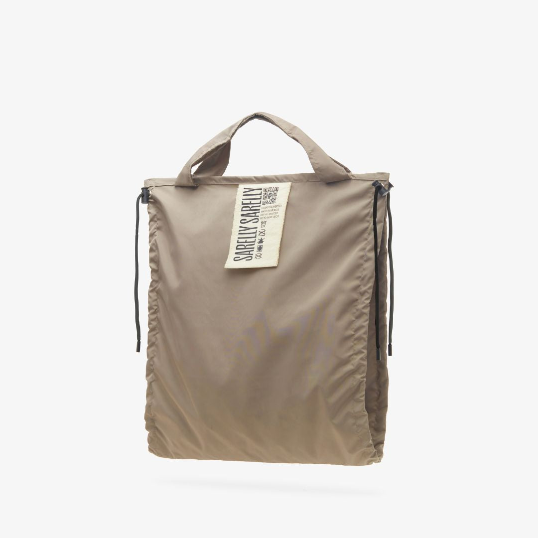 Nuestra interpretación de la shopping tote bag en tela impermeable, extra ligera y minimalista.